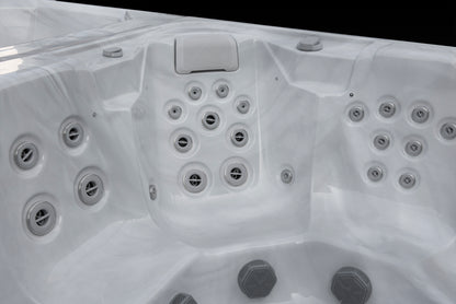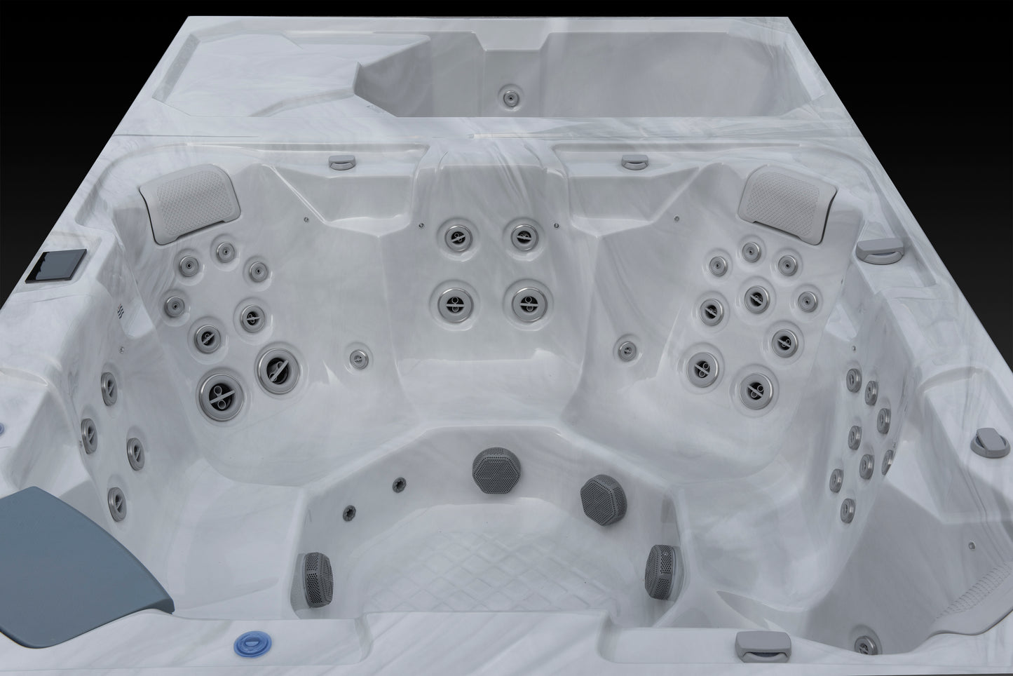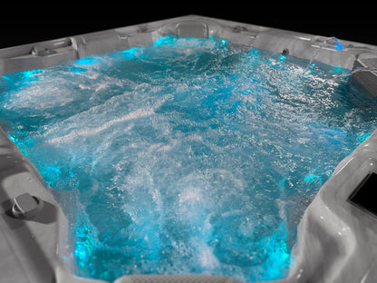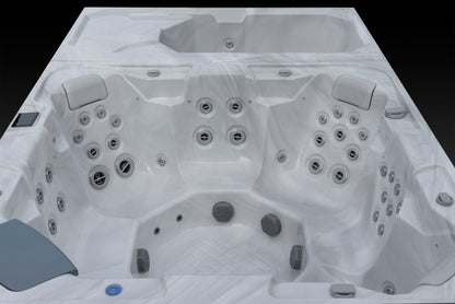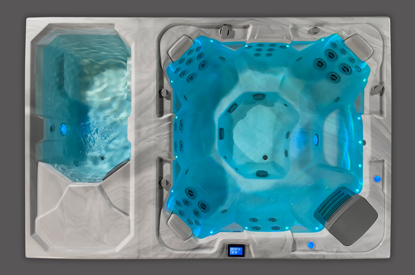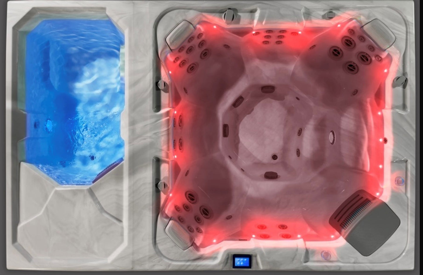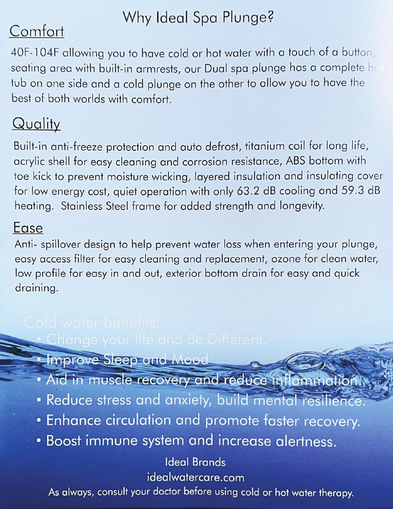 Our Emerson Fusion is a full-size saltwater ready hot tub with our Solo Cold Plunge all in one. The Fusion hot tub side is a 6-person open seating, 49 massage jets that are placed to relax every part of your body, 2 large jet pumps, circulation/ filtration pump, 2 filters, Multicolored LED lighting, Bluetooth stereo, ozone purification system Plus our Solo Cold Plunge all in one unit.